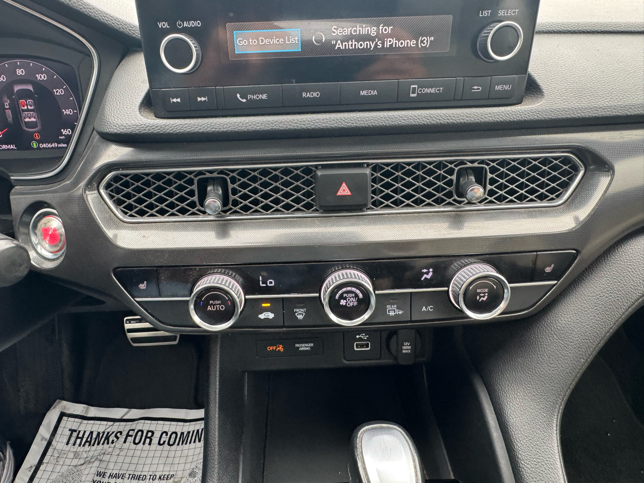 As you approach, the sleek body-colored front and rear bumpers, black side windows trim, and fog lamps give this Acura Integra a dynamic and modern look. And let's not forget the auto on/off LED headlights that illuminate your path with precision and style.