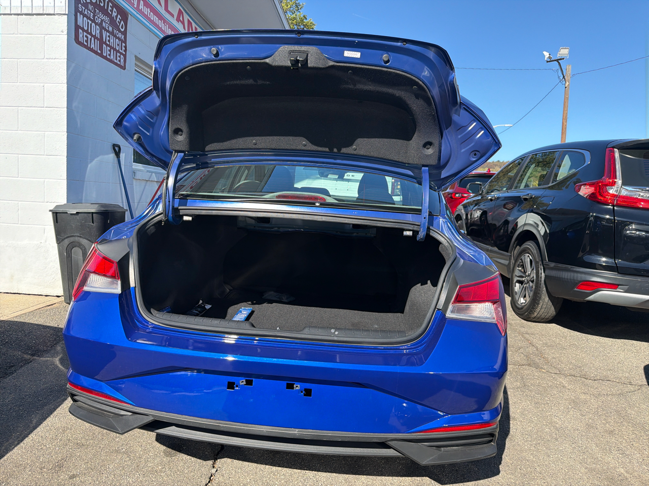 The exterior of this Elantra is both stylish and functional, with a modern design featuring chrome accents and auto high-beam daytime running lights. Step inside, and you'll find a comfortable interior with front bucket seats and dual-zone automatic air conditioning to keep you and your passengers cozy on every drive. The spacious trunk offers plenty of room for all your gear, making this car perfect for road trips or everyday errands.