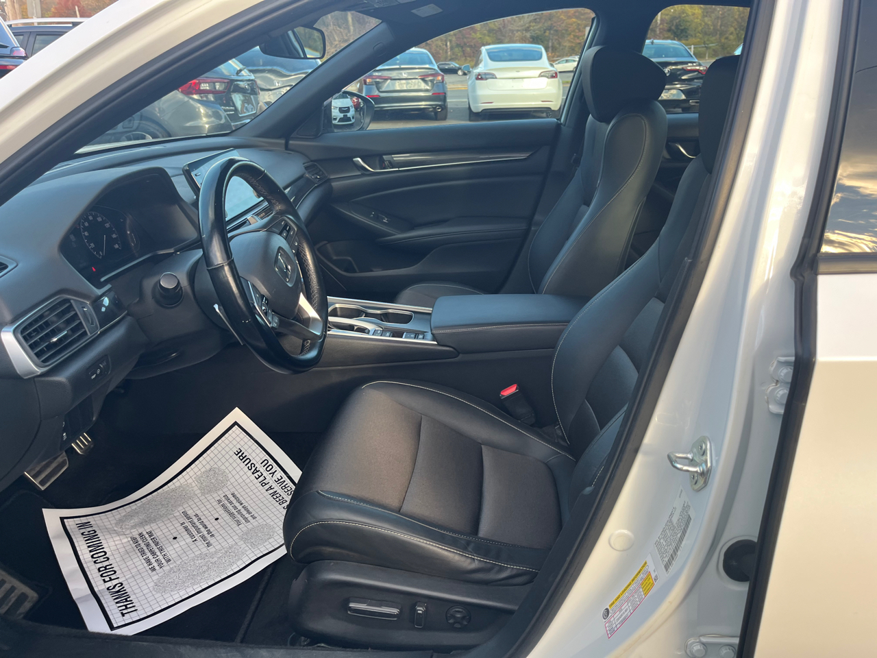 Sporting a crisp white exterior with a hint of sophistication, this Accord Sedan is bound to turn heads wherever you go. The clean lines, chrome accents, and 19-inch alloy wheels give this sedan a modern and luxurious look that you'll love showing off.