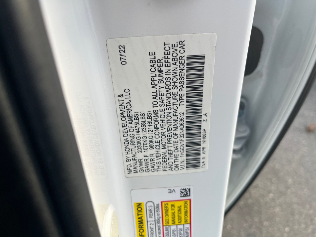 1HGCV1F32NA063612