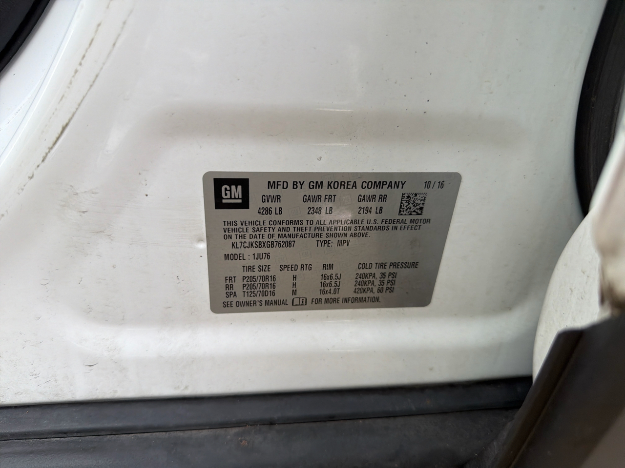 The 16" steel wheels are ready to roll on P205/70R16 all-season tires, ensuring a sturdy grip on the road ahead. Whether you're cruising around town or taking a road trip, this Trax is equipped to handle it all with its 138 horsepower and 148 lb-ft of torque.