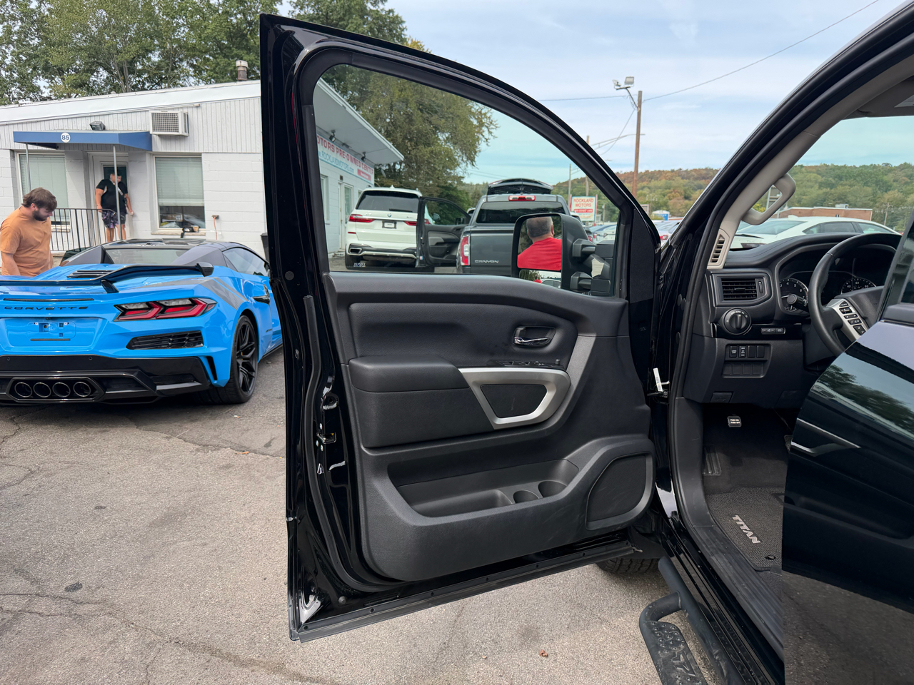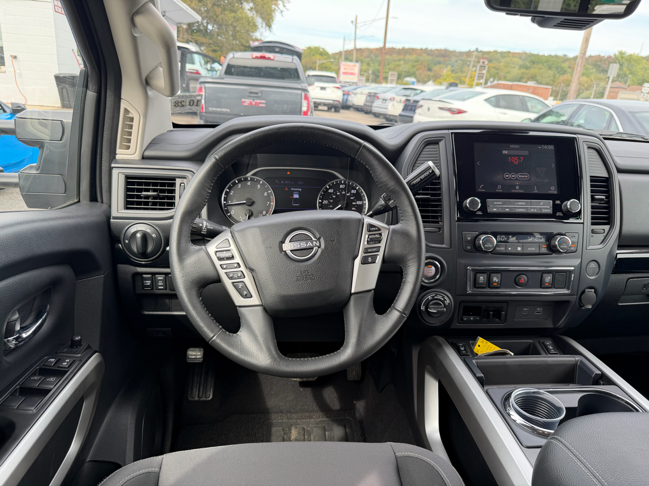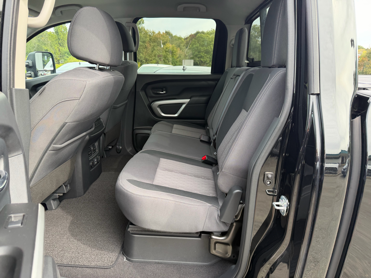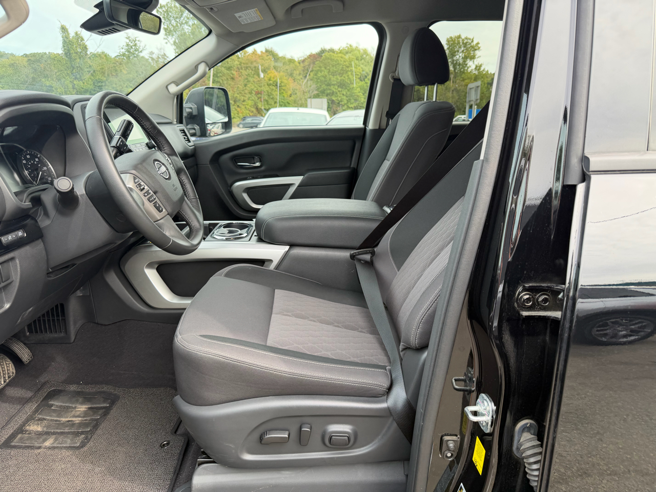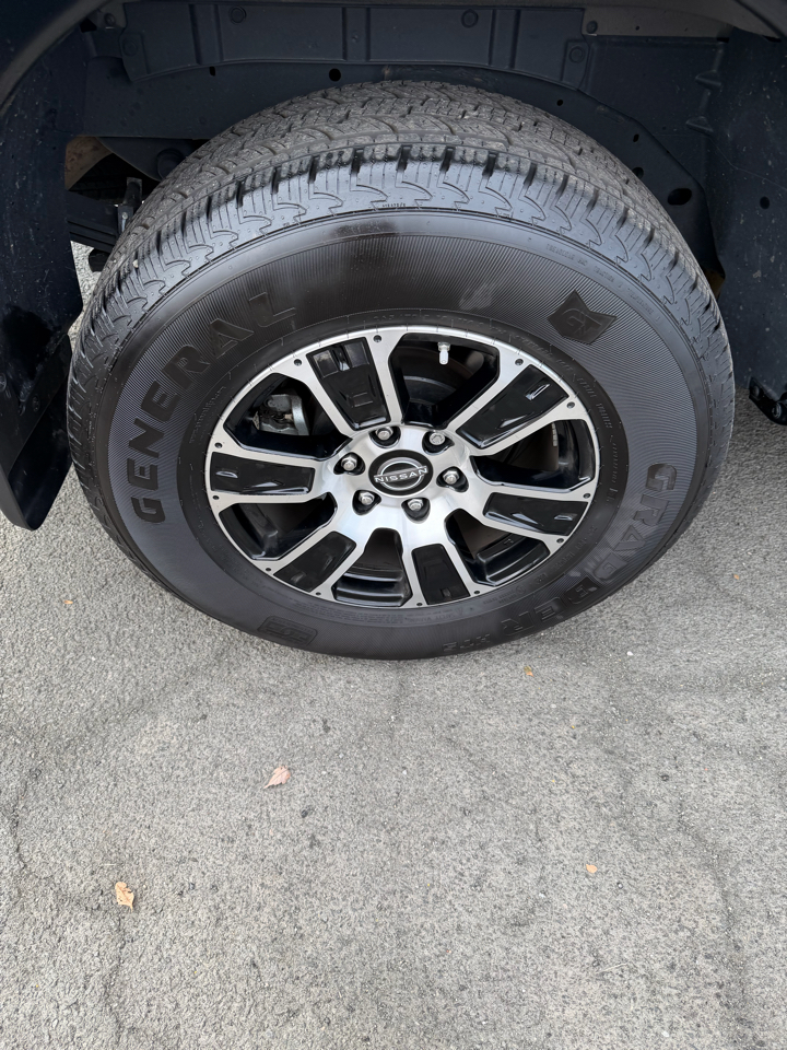 The exterior of this Titan is both rugged and stylish, with a black grille, body-colored bumpers, and deep-tinted glass adding to its bold look. The 26-gallon fuel tank, steel spare wheel, and full-size spare tire ensure you're prepared for any journey ahead.