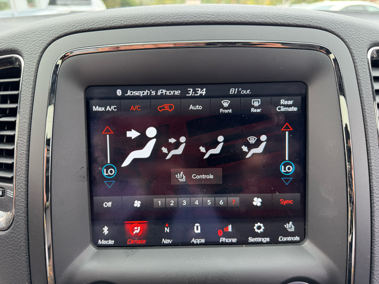 Step inside the spacious cabin and experience luxury at its finest. The heated leather steering wheel and heated front seats will keep you cozy on chilly mornings, while the Uconnect system with Bluetooth connectivity lets you stay connected on the go. The third-row seat effortlessly folds into the floor at the touch of a button, creating additional cargo space for all your gear.